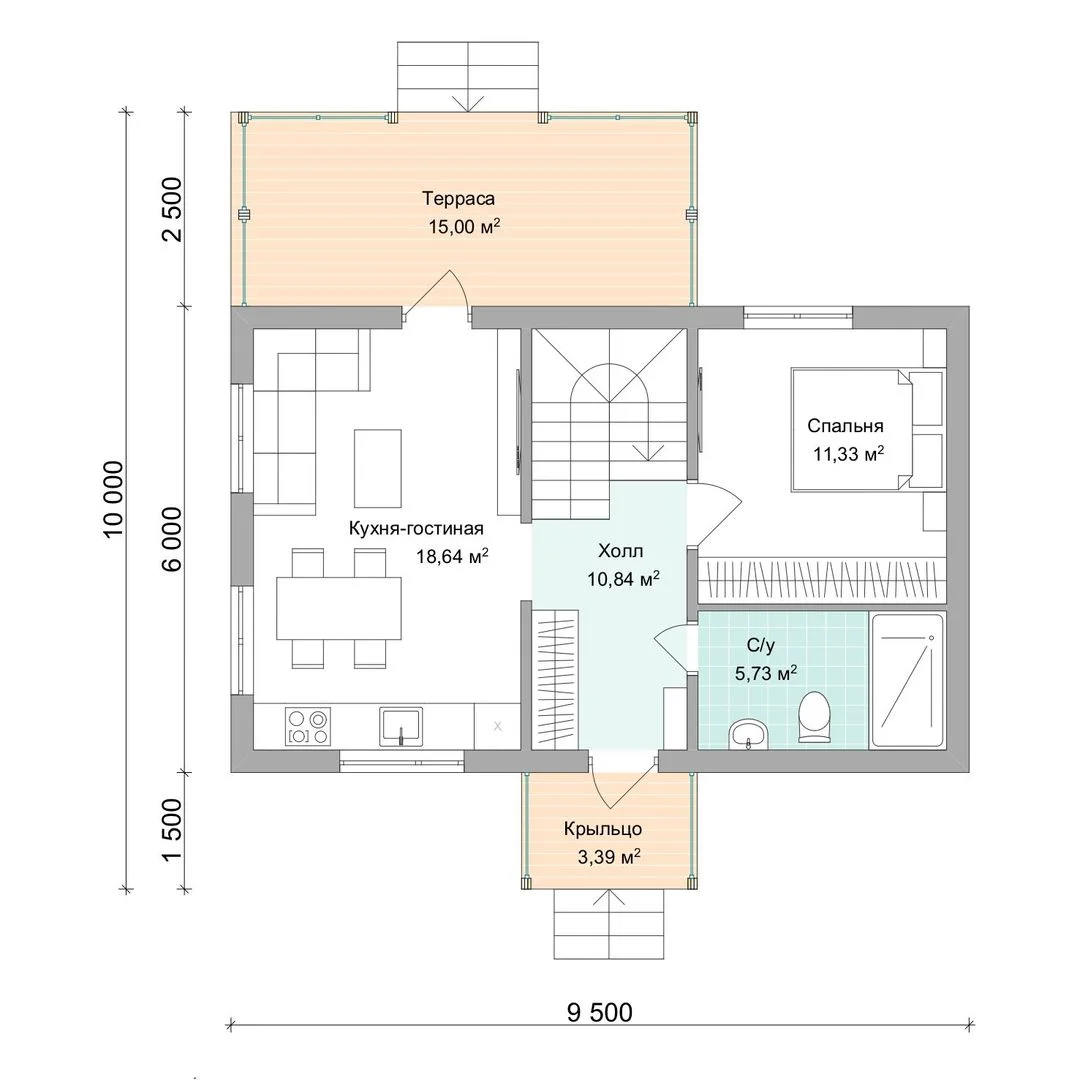 Размеры дома, м 9,5х10 м