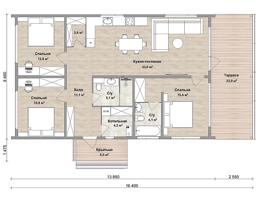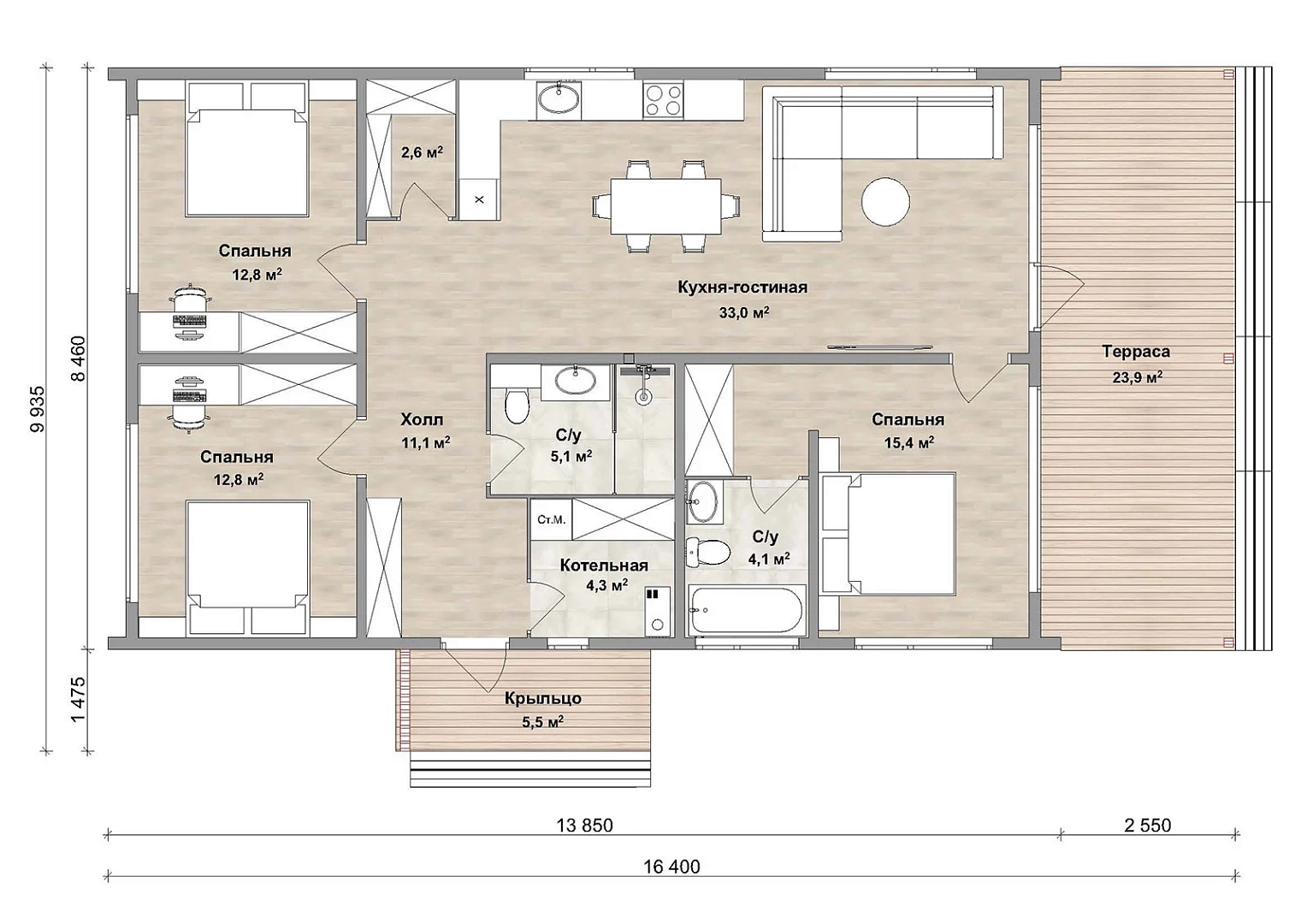 Размеры дома, м 9,9х16,4 м