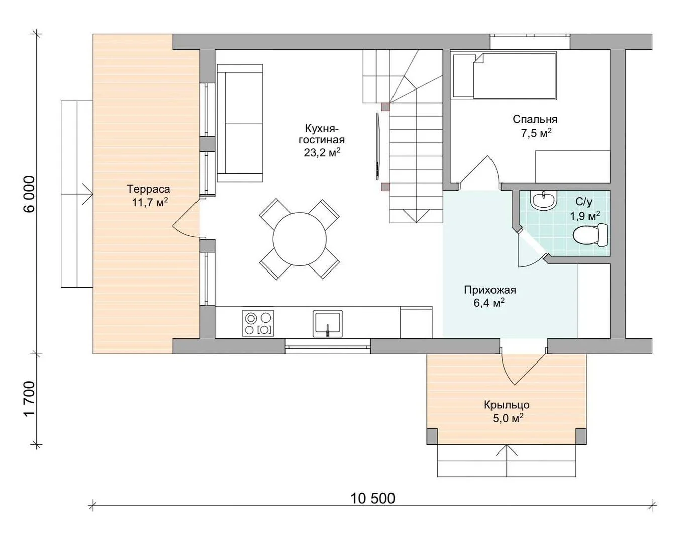 Размеры дома, м 10,5х6 м