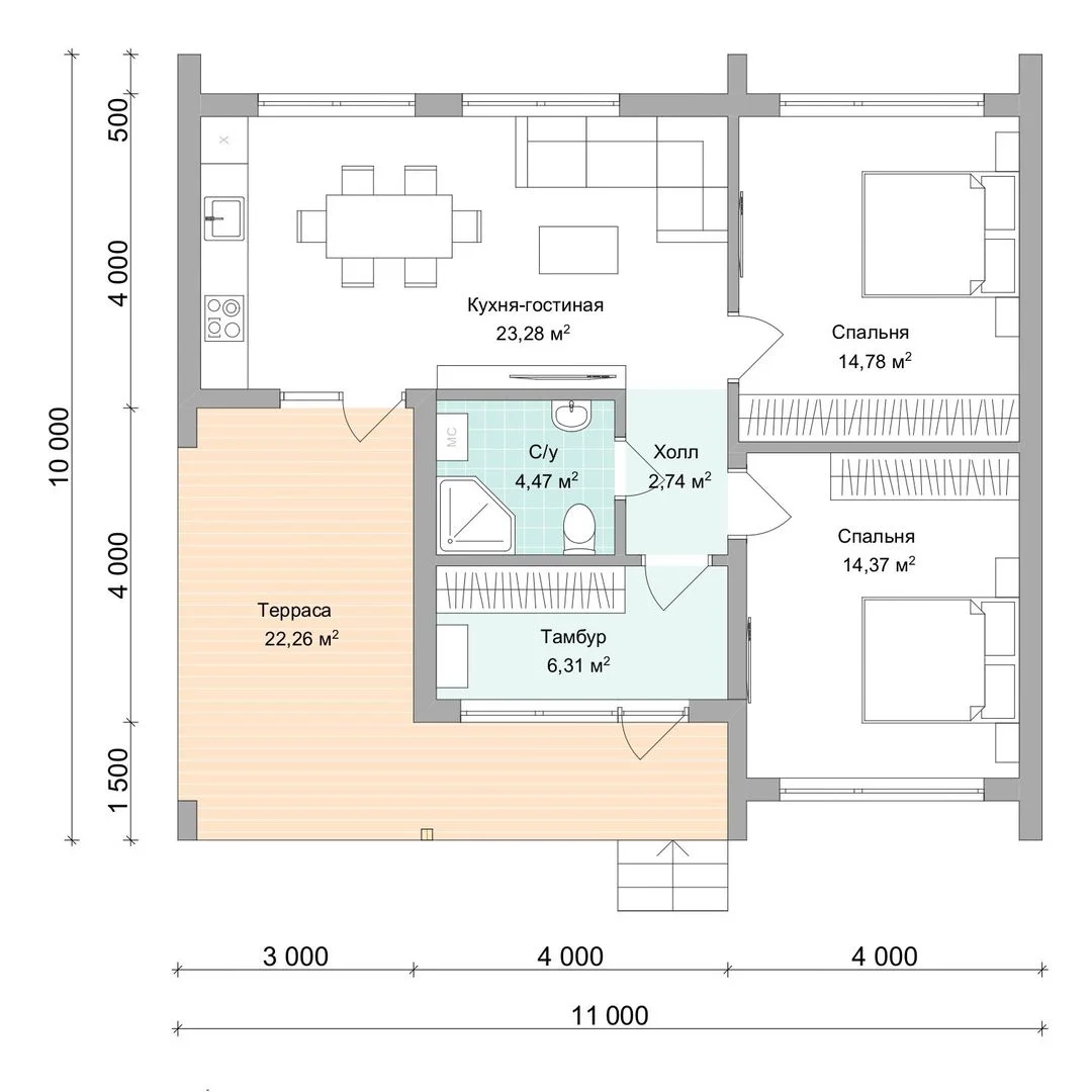 • терраса 22,26м2