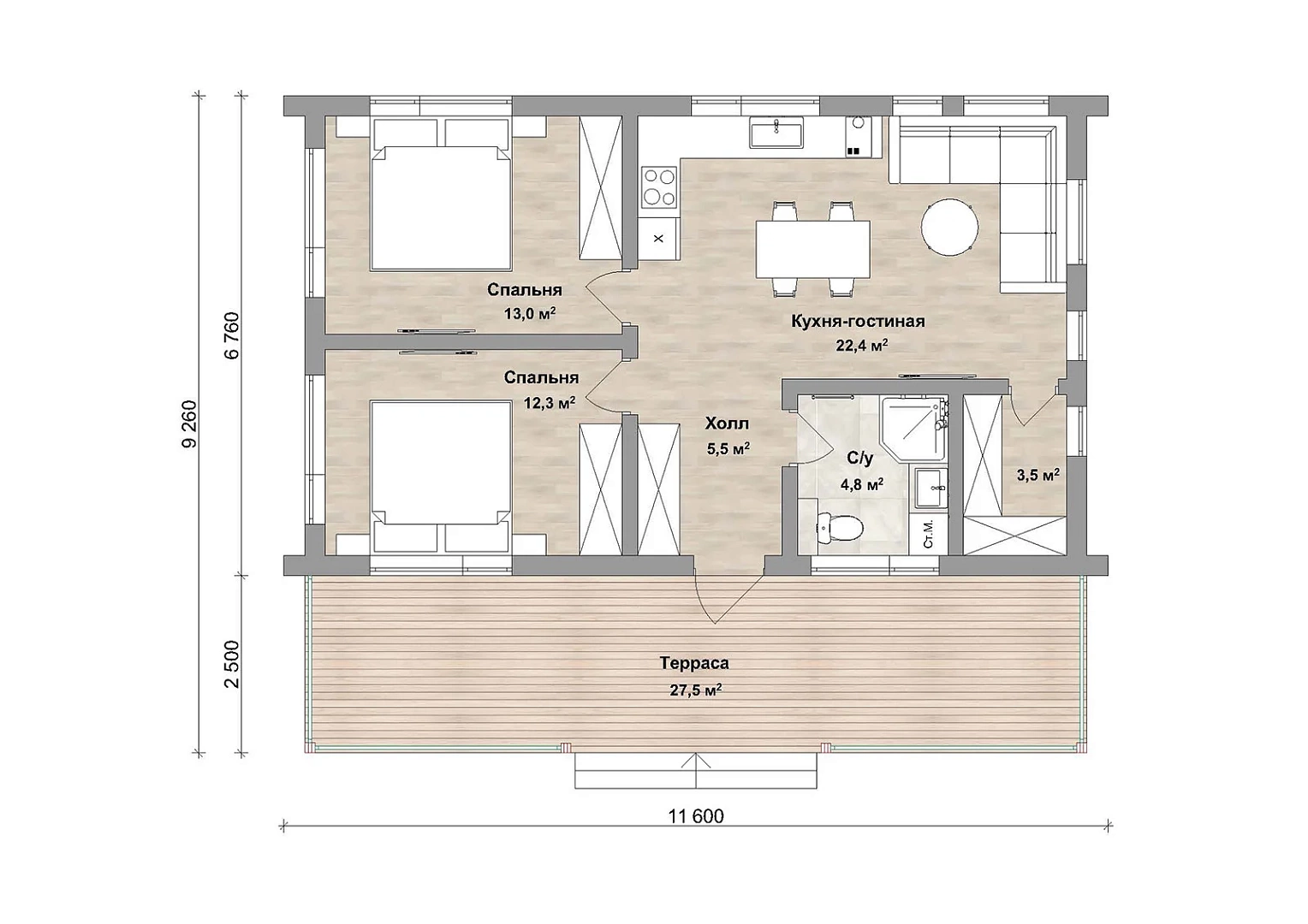 9,3х11,6 м м