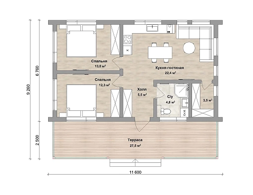 Размеры дома, м 9,3х11,6 м