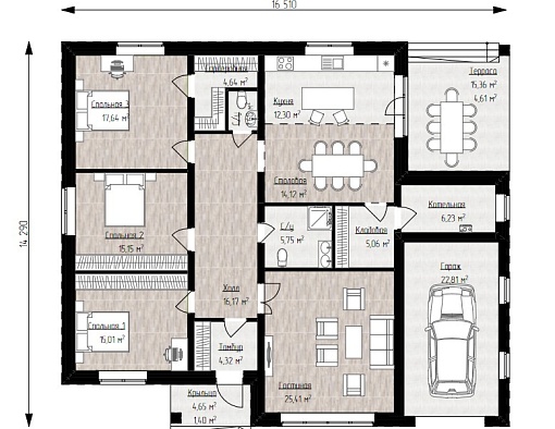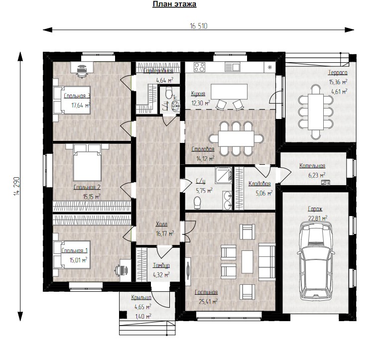 | Размеры дома, м | 16.5 х 14.3 |