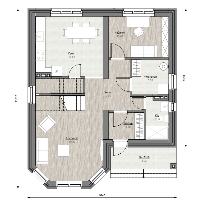 | Размеры дома, м | 11.8 х 9.7 |