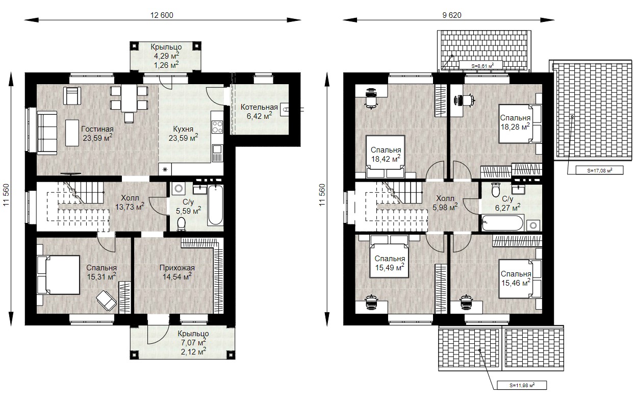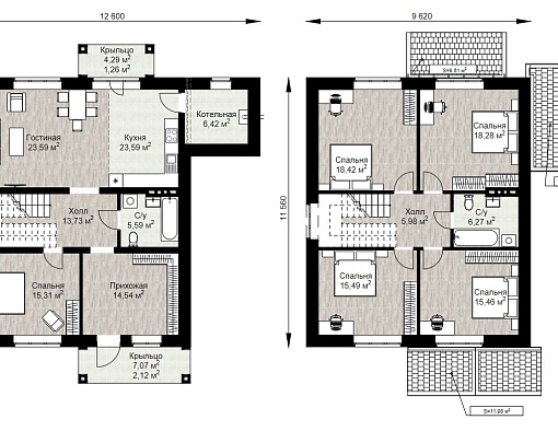 | Размеры дома, м | 12.6 х 11.6 |