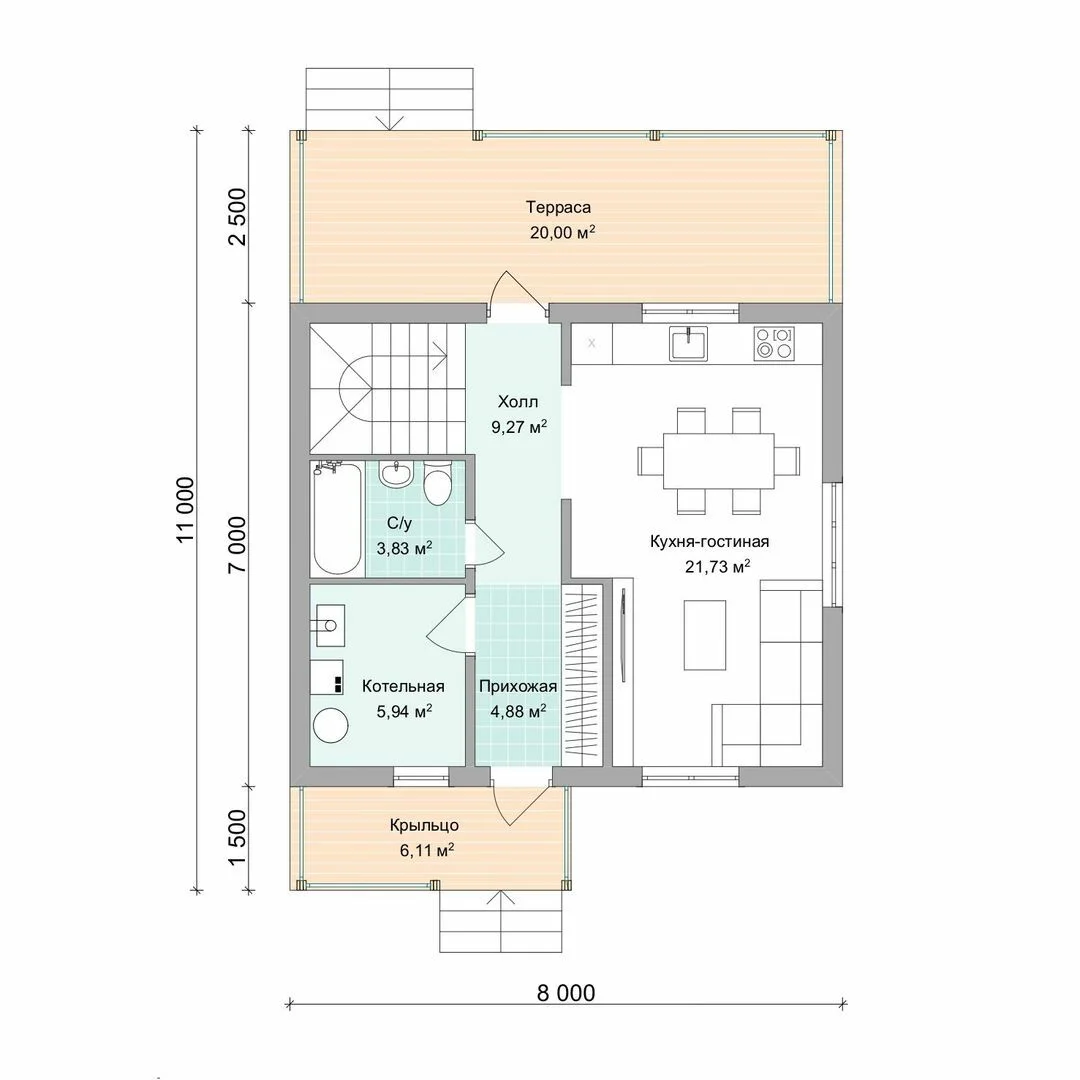 Размеры дома, м 8х11 м