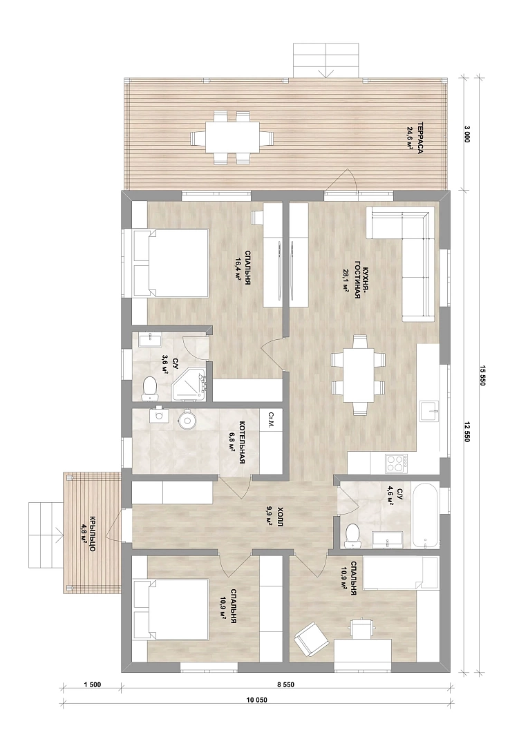 • терраса 24,6м2