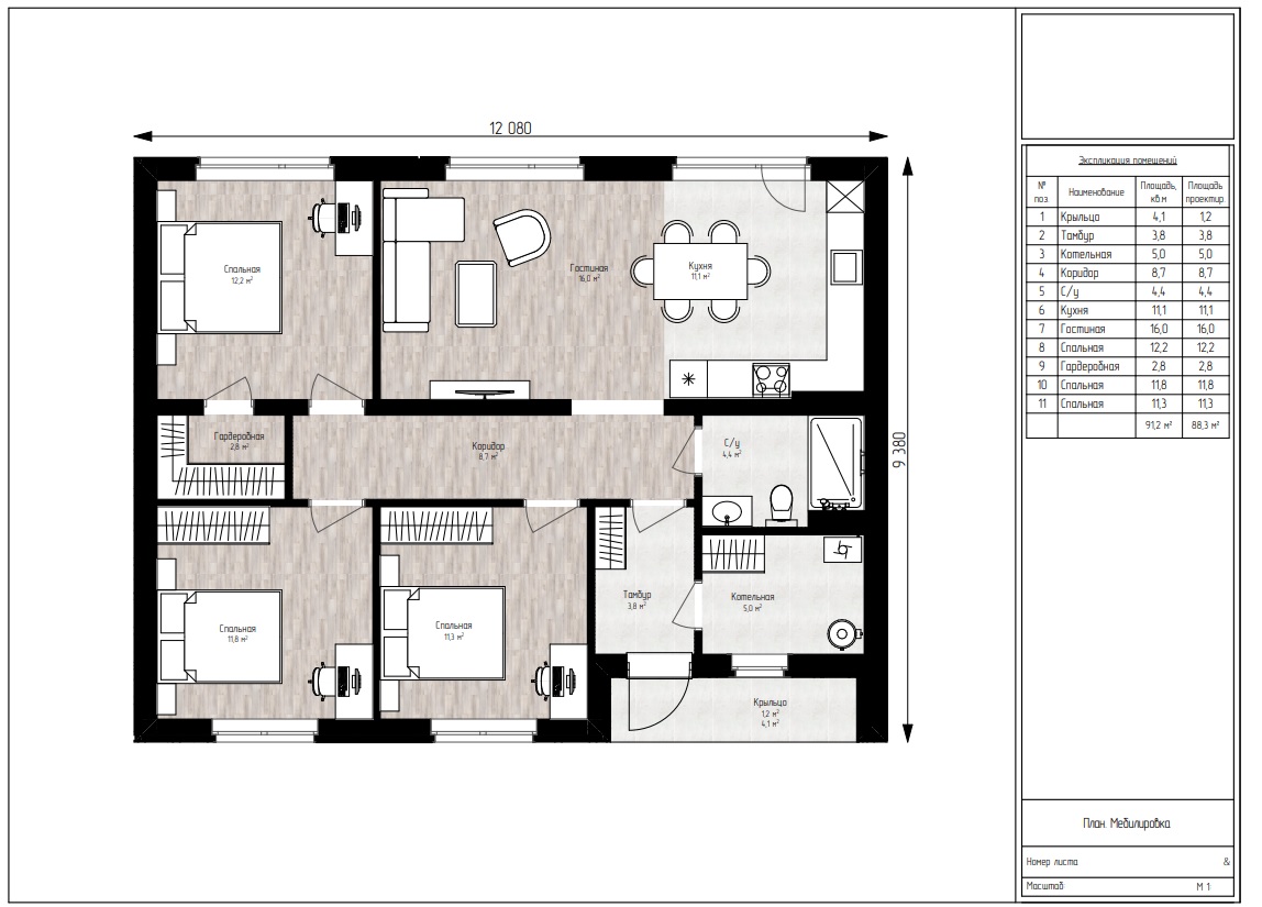 | Общая площадь дома, м² | 91.2 |