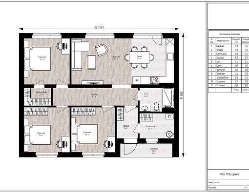 | Размеры дома, м | 12 х 9.4 |