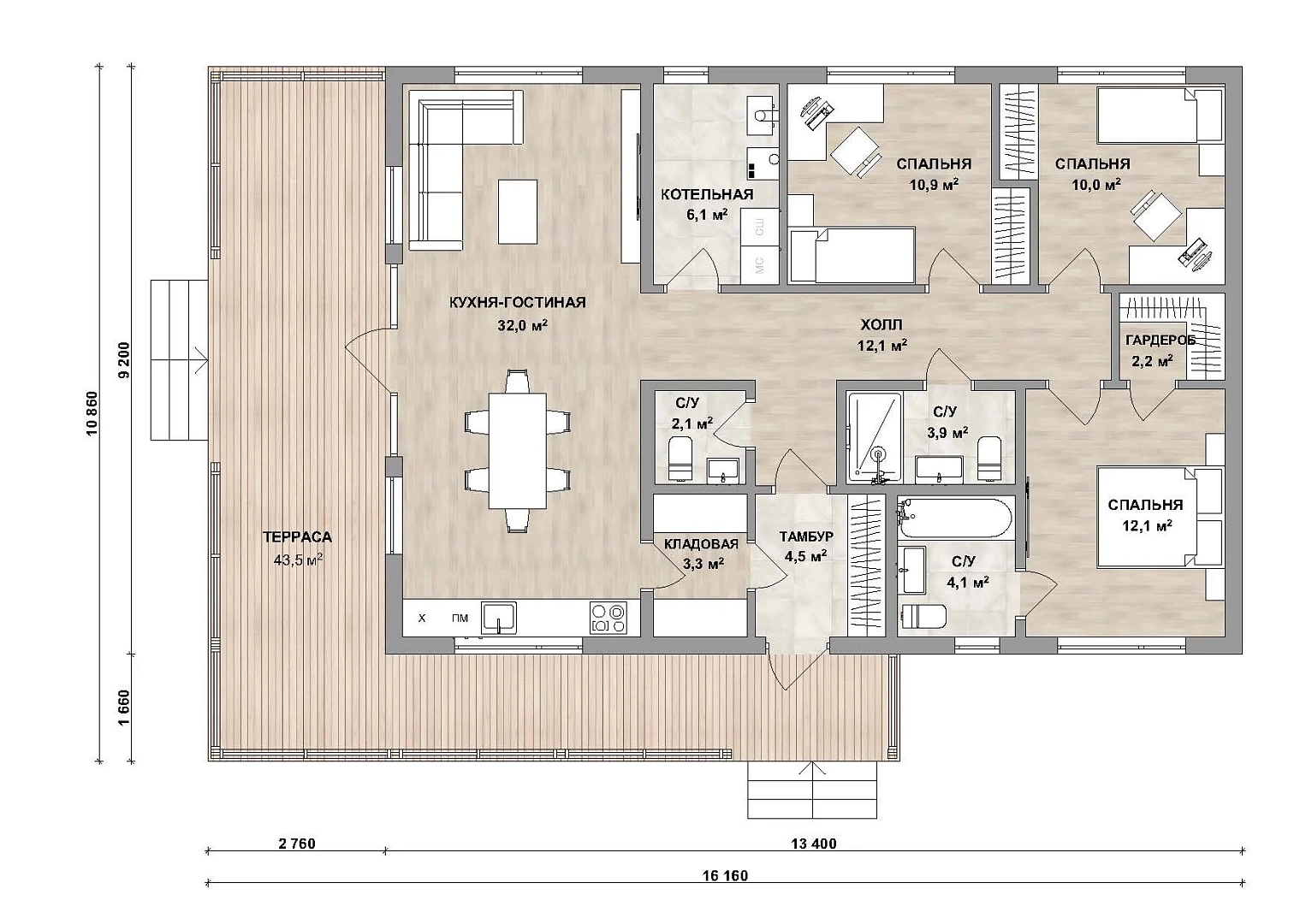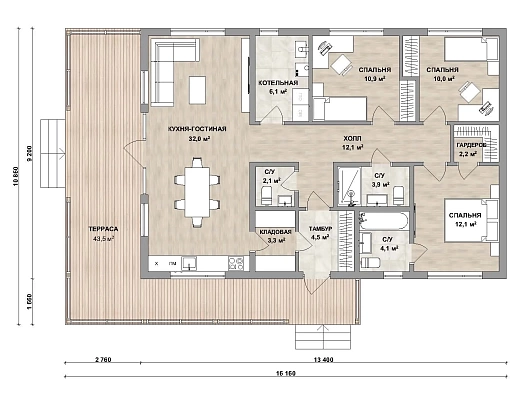 | Размеры дома, м | 16,16 х 10,86 |