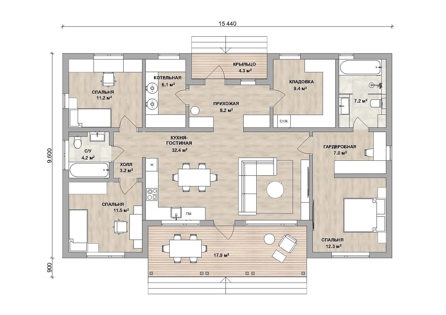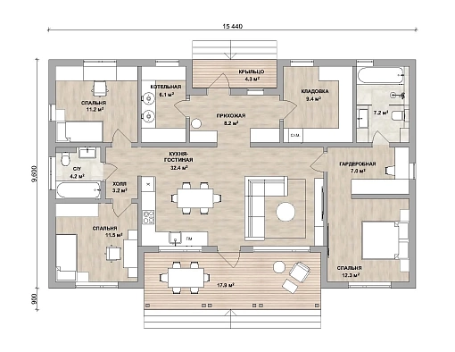 | Размеры дома, м | 15,44 х 10,5 |