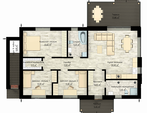 • крыша с утеплением