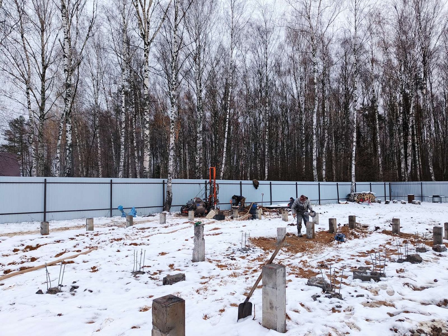 - работы по возведению фундамента на забивных сваях;