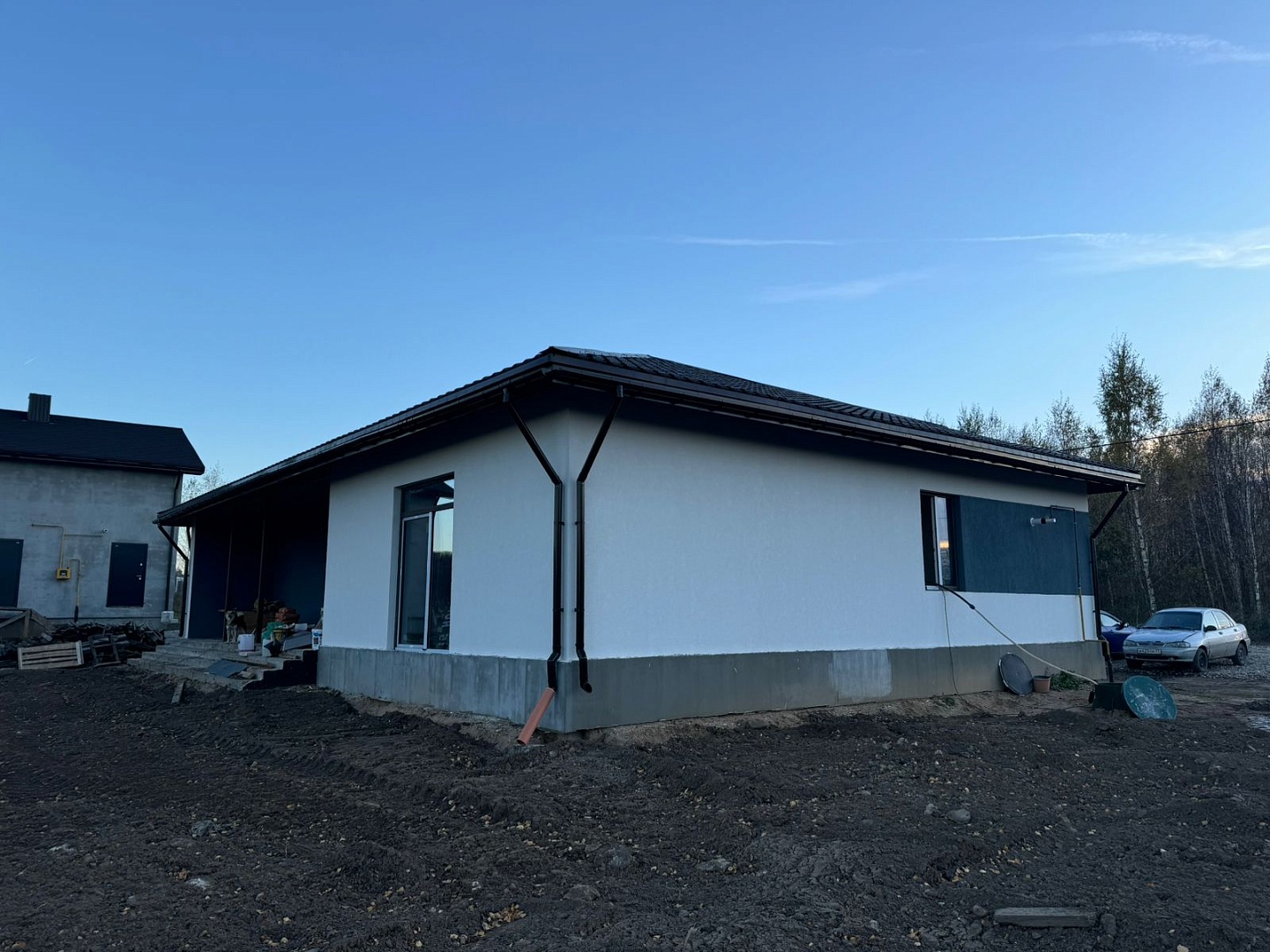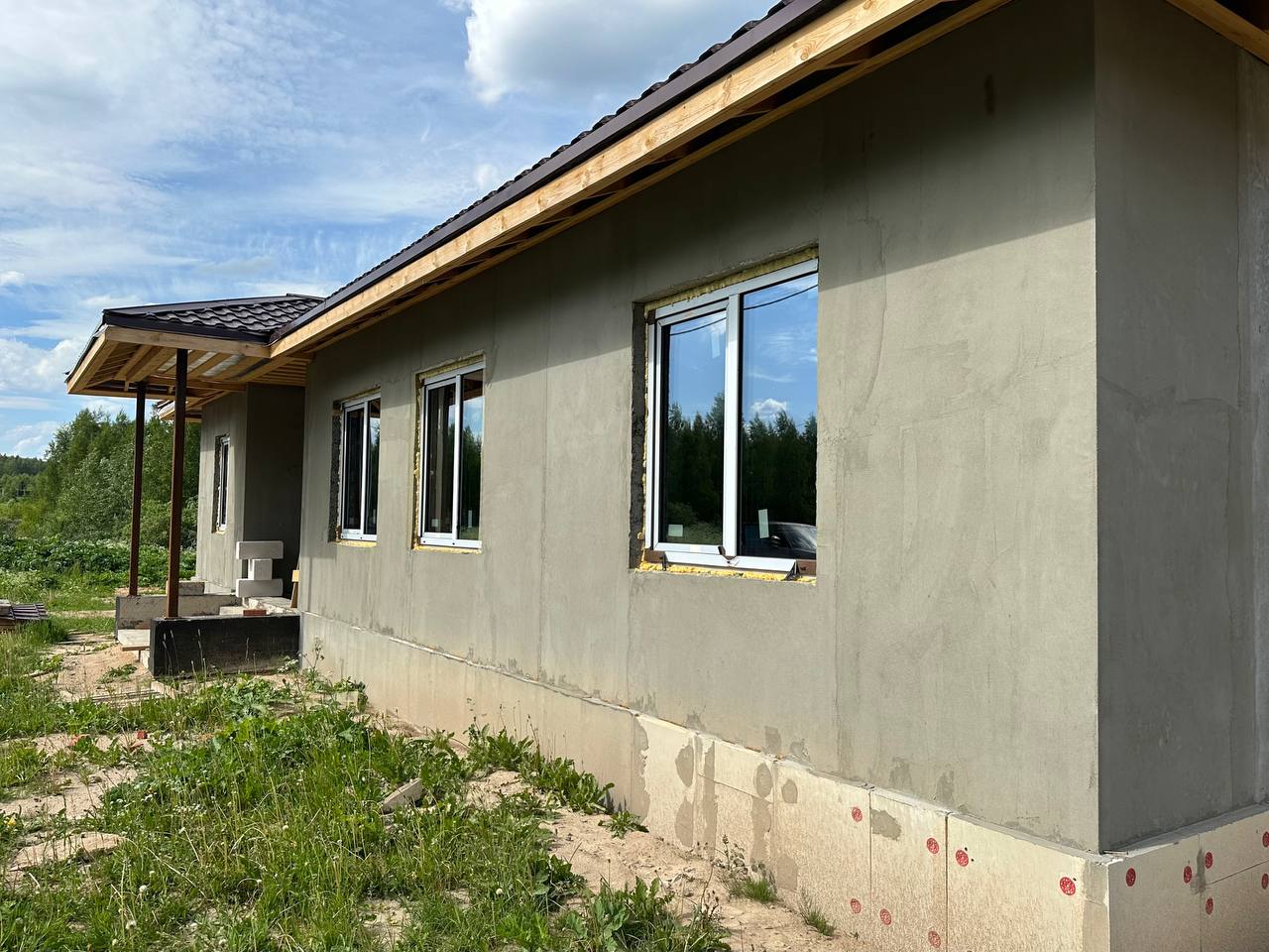 - наложен выравнивающий слой штукатурки на фасадах.